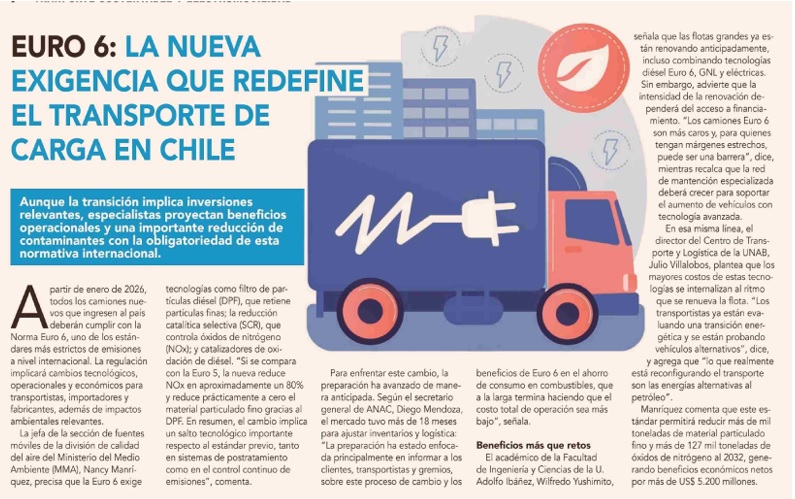 También se cita al académico de la facultad de ingeniería y ciencias de la Universidad Adolfo Ibáñez (UAI) Wilfredo Yushimito, quien explicó que las grandes flotas ya habían estado haciendo el cambio tecnológico, incorporando también nuevos combustibles como vehículos eléctrico y a GNL y que el desafío será de financiamiento, ya que los cambiones con la tecnología Euro VI son más caros.
