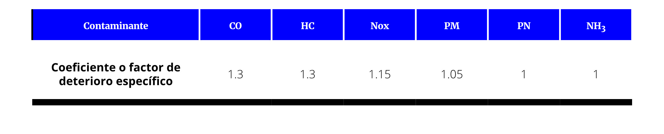 Coeficiente o factor de deterioro especificado de cada contaminante.