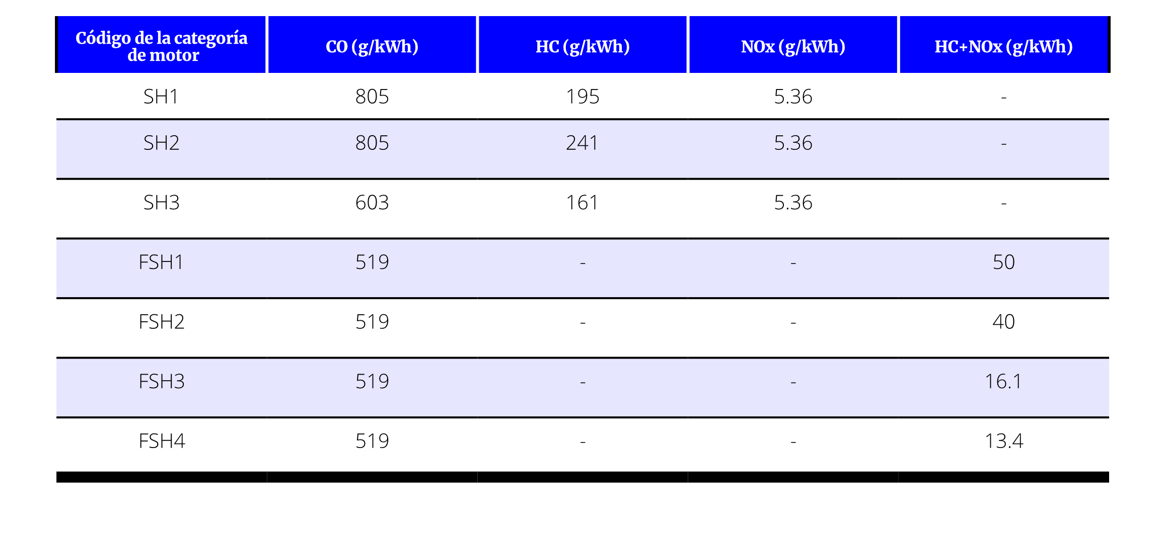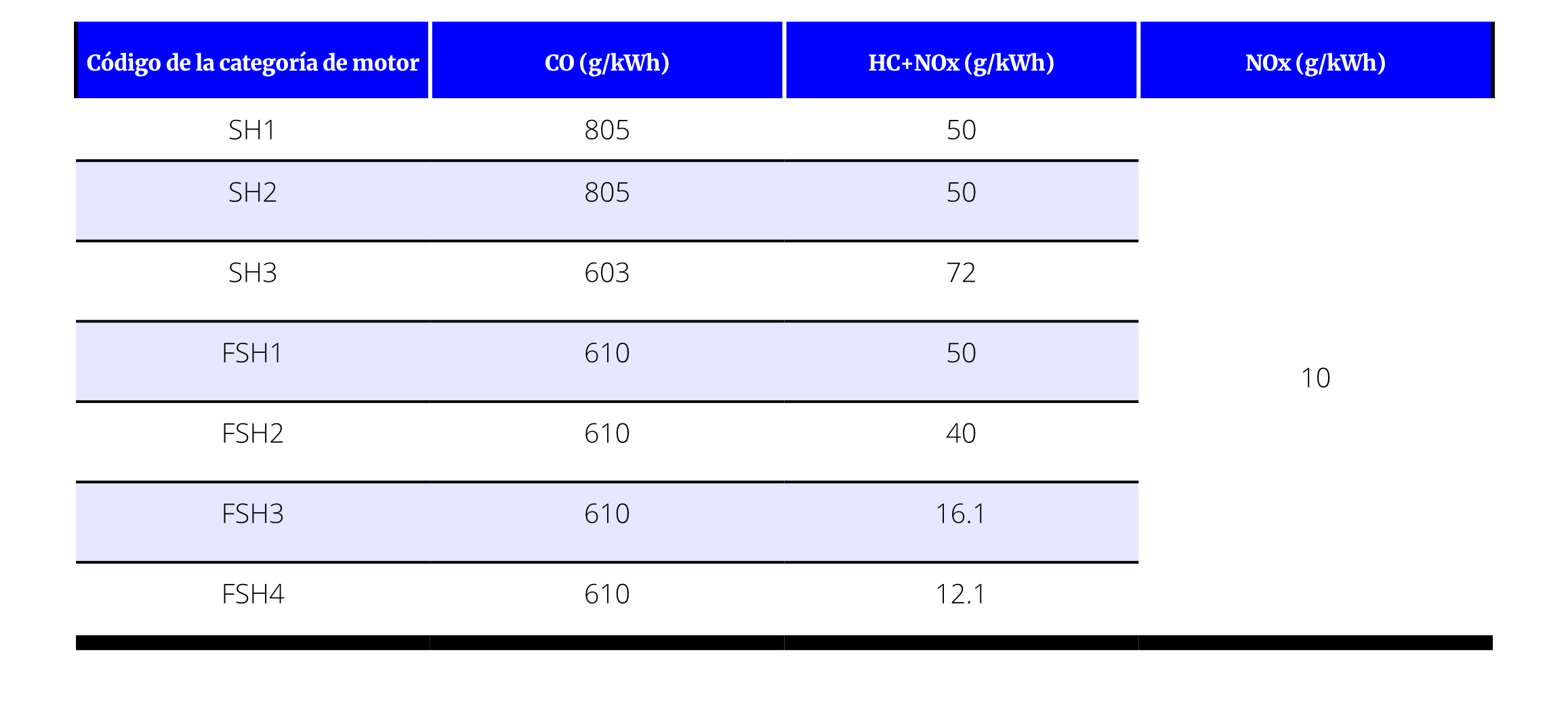 Límites de emisión Stage I y II para pequeños motores de encendido por chispa: