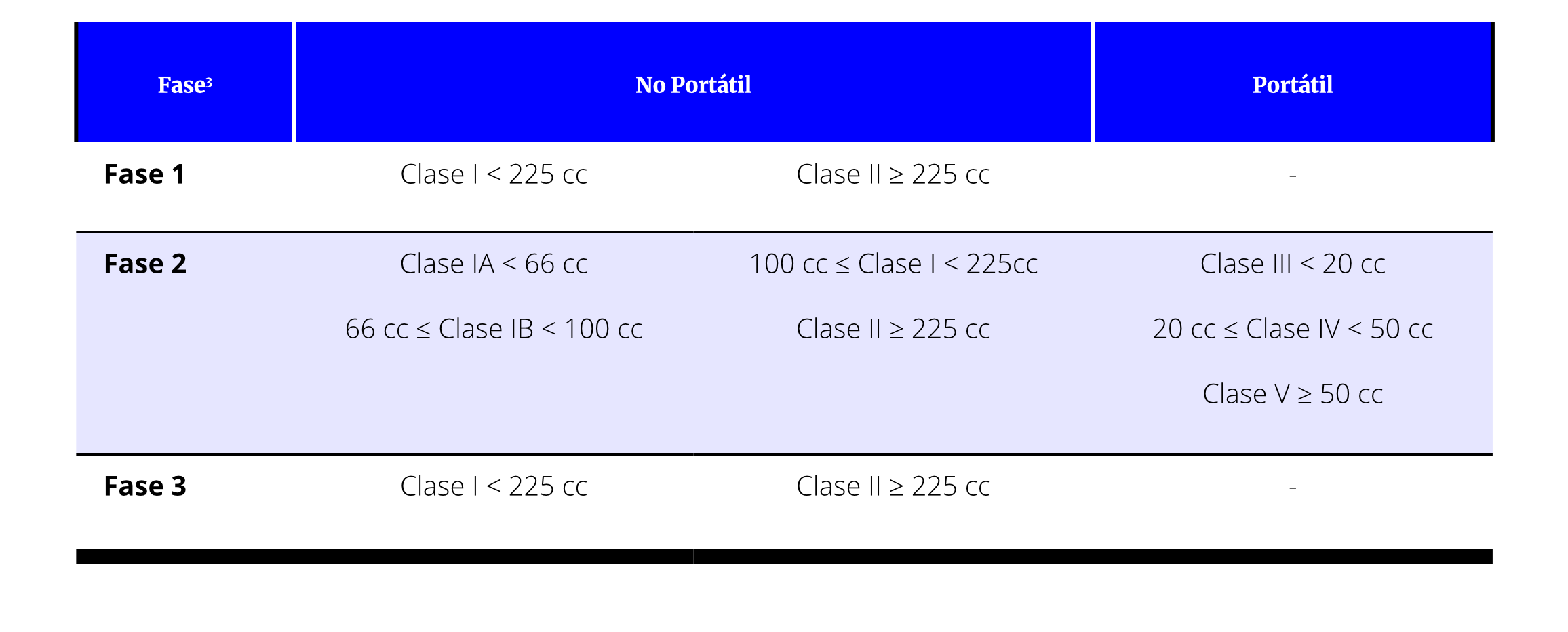 potencia nominal en unidades de kilovatios (kW). - Motores de combustión por ignición de bujía: se clasifican por clases, según